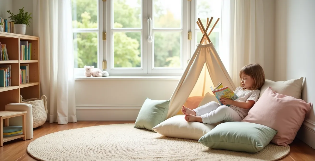 Pour qu’un coin lecture devienne véritablement irrésistible, il doit transcender sa fonction et devenir un territoire d’aventure, un monde à part. Le transformer en cabane est la méthode la plus puissante pour envoyer ce signal à l’enfant : « Ici, tu entres dans ton royaume ». La cabane matérialise une frontière symbolique entre le monde réel et celui de l’imagination. Nul besoin de grands travaux ; quelques astuces suffisent pour créer cette bulle magique.