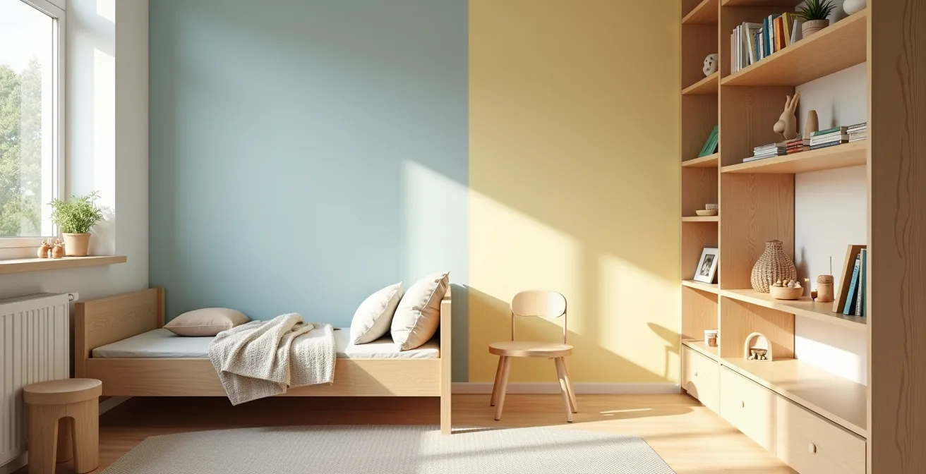 Le choix de la couleur pour la chambre d’un enfant va bien au-delà d’une simple préférence esthétique. C’est un élément central qui influence son humeur, son sommeil et sa capacité de concentration. La psychologie des couleurs nous enseigne que les teintes vives comme le rouge ou l’orange, si elles sont stimulantes pour une salle de jeu, peuvent générer de l’agitation et perturber l’endormissement si elles dominent l’espace nuit. À l’inverse, les tons pastel et naturels (bleu ciel, vert d’eau, beige, grège) ont des vertus apaisantes reconnues. Ils créent une atmosphère de sérénité et de sécurité affective, propice au repos et à la rêverie.