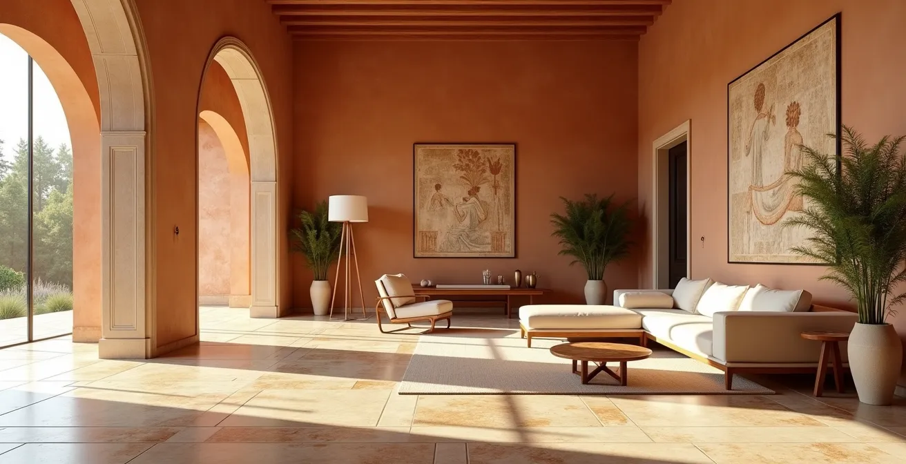 - Maîtriser la couleur : Osez le rouge pompéien, mais sur un seul mur. Évitez l’overdose. Un intérieur romain n’est pas « beige et fade », mais il n’est pas non plus un arc-en-ciel.