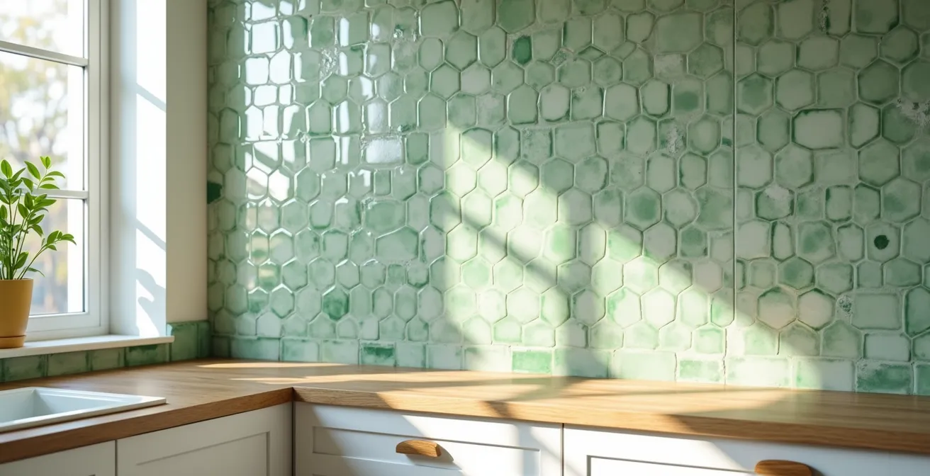 Ce jeu de lumière est l’atout majeur du zellige. Les surfaces légèrement irrégulières de chaque carreau captent et réfléchissent la lumière de manière unique, évitant l’aspect plat et froid que peut avoir un carrelage industriel. Pour un rendu harmonieux, la clé est de mélanger aléatoirement les carreaux issus de différentes boîtes lors de la pose. C’est ce calepinage qui permettra de composer une surface riche et nuancée, où le regard se plaît à découvrir sans cesse de nouveaux détails. N’ayez pas peur des variations, ce sont elles qui donneront vie à votre mur.